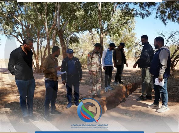 فريق مشترك من المركز الوطني لإدارة الطوارئ والأزمات والكوارث و اللجنة الفنية العليا لمتابعة طفح المياه الجوفية والتشققات والانجرافات الأرضية يتابع مستجدات التشققات الأرضية في جنوب طرابلس